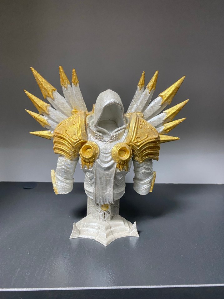 Beyaz ve altın detaylara sahip aksiyon figürü, omuz zırhı ve kanat benzeri sivri uçlarla süslenmiştir. Inarus diablo 4
