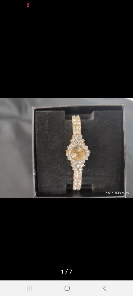 Altın renginde, payetli detaylara sahip kadın saati. Modern klasik ve ışıltılı şıklığı bir arada sunar.