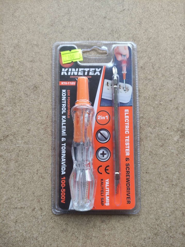 Kintex 2in1 elektrik test cihazı ve tornavida, 100-500V aralığında çalışır ve renkli sapı sayesinde kolay tutuş sağlar. Test ve tornavida işlevlerini bir arada sunar. ⚡çift taraflı yıldız ve düz