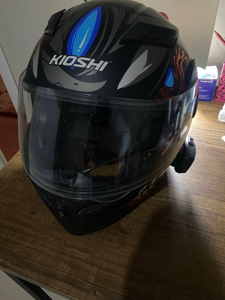 KIOSHI marka xxl beden motosiklet kaskı knmaster kn2250 marka intercomla ve led kask ışığıyla beraber satılıktır