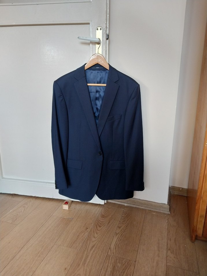 Lacivert renkli erkek takım ceketi, klasik yaka ve uzun kolludur. Düz kumaş ve düğmeli tasarımıyla ofis ve iş ortamına uygundur. ️%81 yün içerir kuru temizleme öneriler.