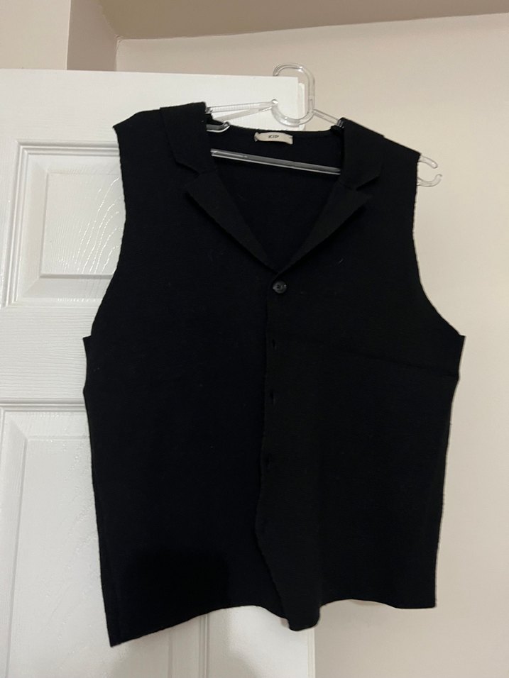 Kip Düğmeli Siyah Kolsuz Midi Yelek