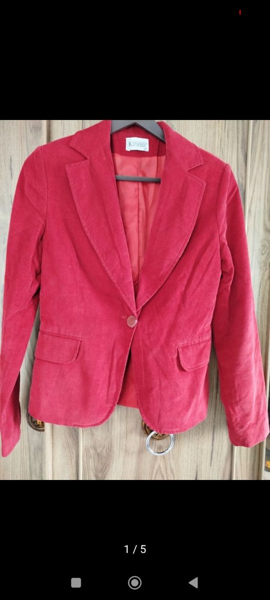 Sorunsuz, şık ve capcanlı kırmızı renkte kadife ceket. Boy 44, en 56