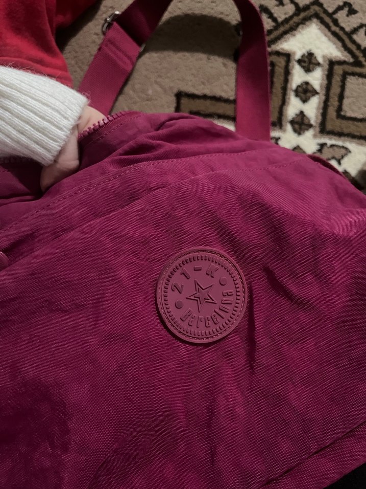 Bordo renkte, fermuarlı ve baskılı desene sahip sentetik kumaştan çapraz çanta. Trendy rahat sokak stiline uygun. uzun süredir dolapta bu yğzden iç kısmında sararma var. Yıkanır temizlenirse geçer. onun dışında temizdir