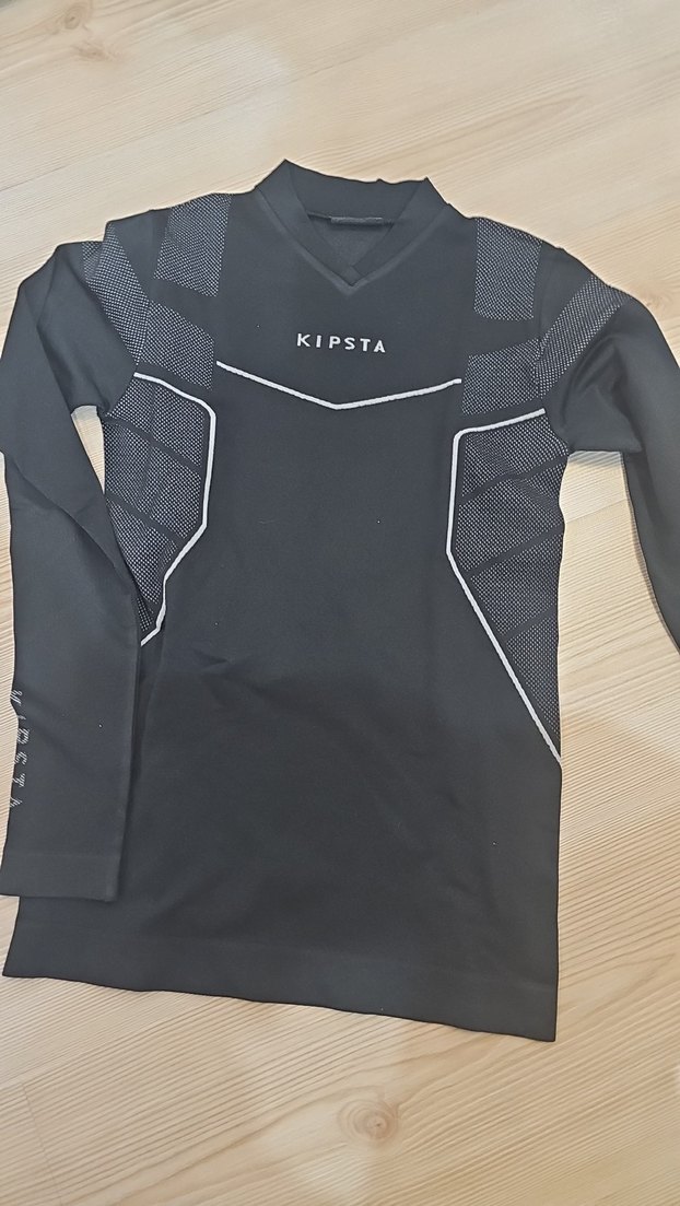 Kipsta marka siyah baskılı çocuk atlet, uzun kollu ve rahat kesimlidir.