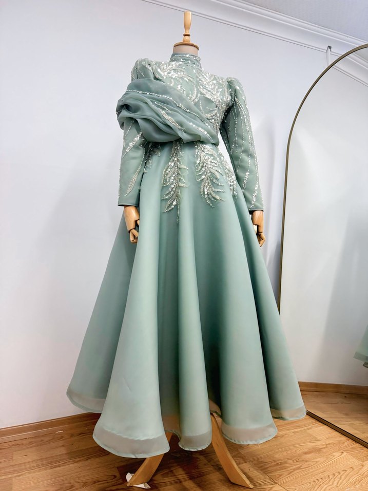 36 40 beden arası uyumludur arkası iplidir boy 135 cm kiralık 1800₺ şal dahildir