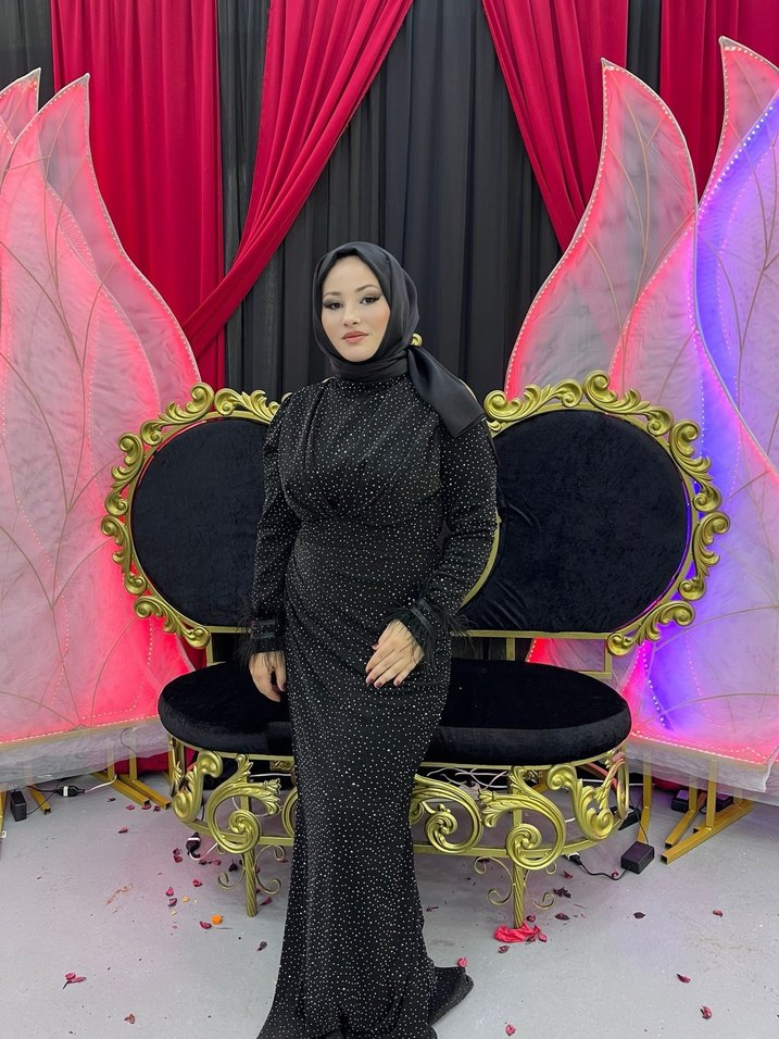 KİRALIK Drapeli Siyah Uzun Abiye 40 42 44 beden