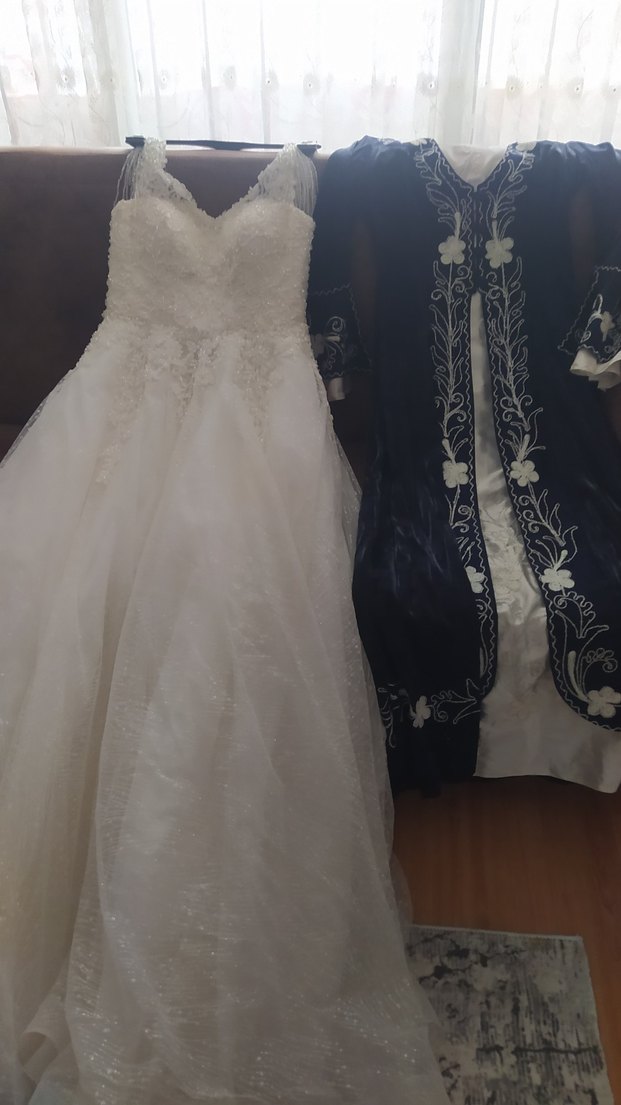 36-38 bedene uygundur gelinliğin arkası iplidir kollarında sarkıt boncuk işlemesi vardır sadece İzmir içi teslim edilir sehirdisina gönderim yoktur kiralık fiyatı 5000 TL dir her bütçeye uygundur