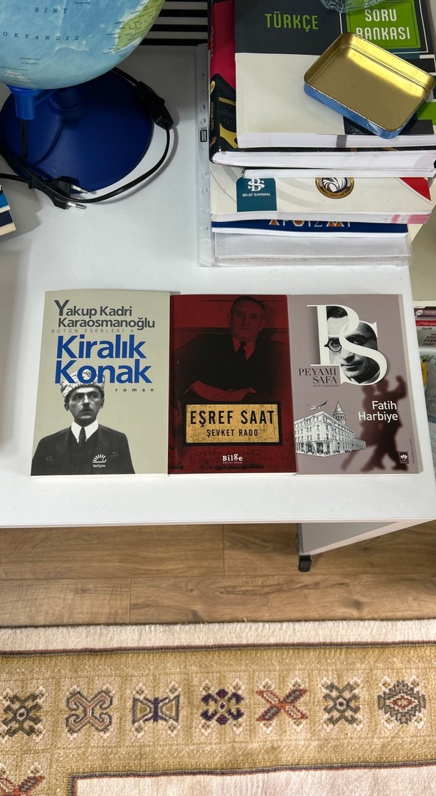 Yakup Kadri Karaosmanoğlu'nun Kiralık Konak, Şevket Rado'nun Eşref Saati ve Peyami Safa'nın Fatih Harbiye biyografi kitapları.