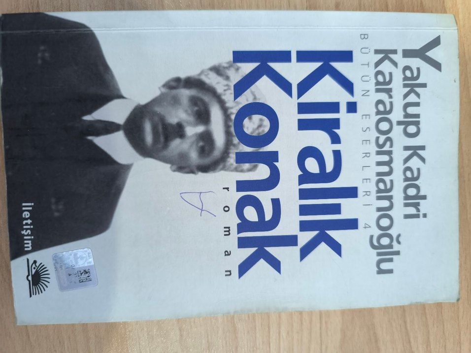 Kiralık Konak adlı roman, kapağında tarihi bir figür bulunan klasik bir hikaye sunuyor. Sayfalarda sararmalar var. Fotoğrafta belirtilmişir.