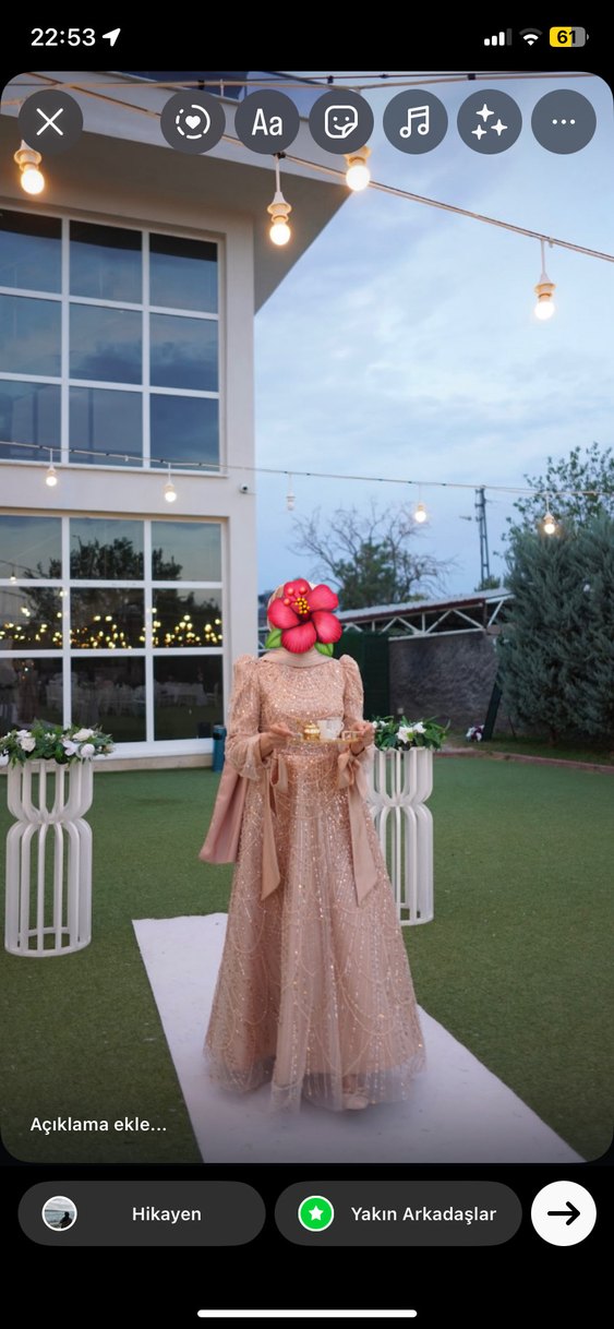 (KİRALIK )Somon pembe alt tonlu Uzun Bohem Nişan Elbisesi