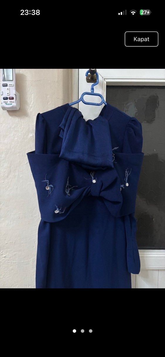 Lacivert uzun kadın elbisesi, kesik yakalı ve drapeli tasarıma sahiptir. Düzenli kesim, ince askılı ve parlak, desensiz gotik stilde avant-garde moda tutkunları için uygundur. Kiralıktır şal ile beraber