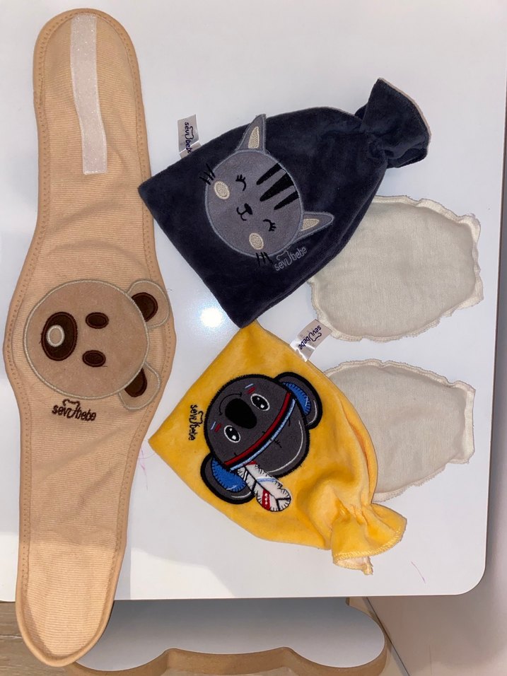 2 adet kiraz çekirdeği ve keseleri ile bir kemer.