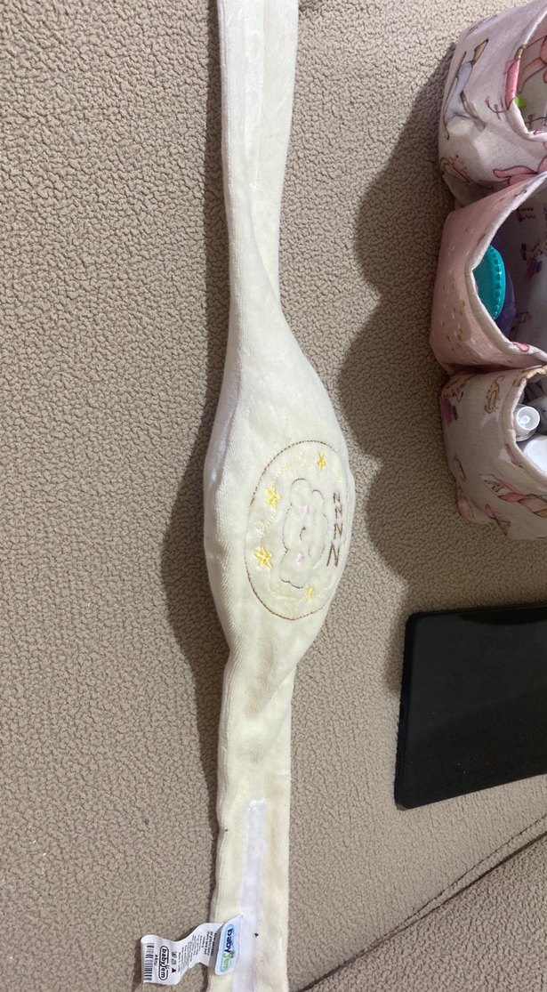 Yumuşak ve sıcak kumaştan yapılmış, gaz kemeri rahatlatırnakışlı sevimli tasarımlı beyaz bebek uyku bandı.