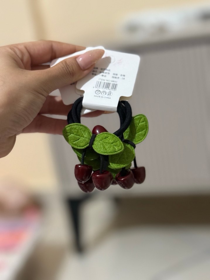Elastik çocuk saç tokaları, yeşil yaprak desenleri ve kırmızı kiraz süslemeleri ile renkli ve şık bir aksesuardır. 4 paket 8 adet şeklindedir