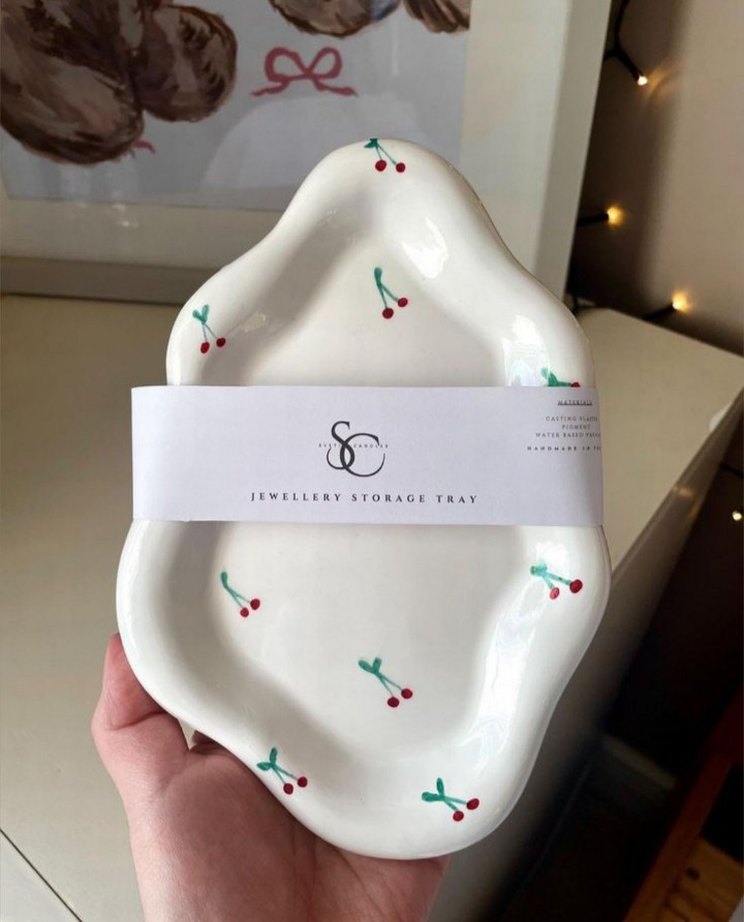 Kiraz Desenli Seramik Takı Tabağı