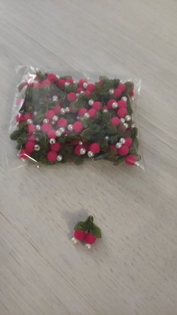 Pembe renkli, küçük yaprak ve inci detaylı çiçek motifli tülbent kenarı oyası 50 li paket, renkli tasarımları için uygundur.