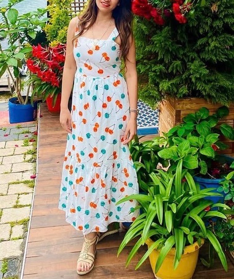 Kirazlı beyaz elbise