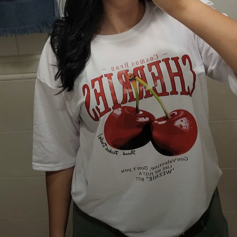 Kirazlı beyaz T-shirt