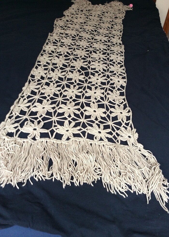 Yumuşacık kalın merserize ipten el emeği şık motiflerden ördüğüm şık bir şal ölçüsü en 70 cm boy 180 cm