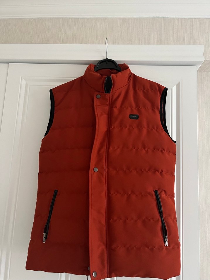 Kiremit, fermuarlı cepli, yüksek yakalı ve kolsuz bu fitted yelek, yumuşak ve sıcak kumaştan üretilmiştir. Günlük kullanıma uygundur.