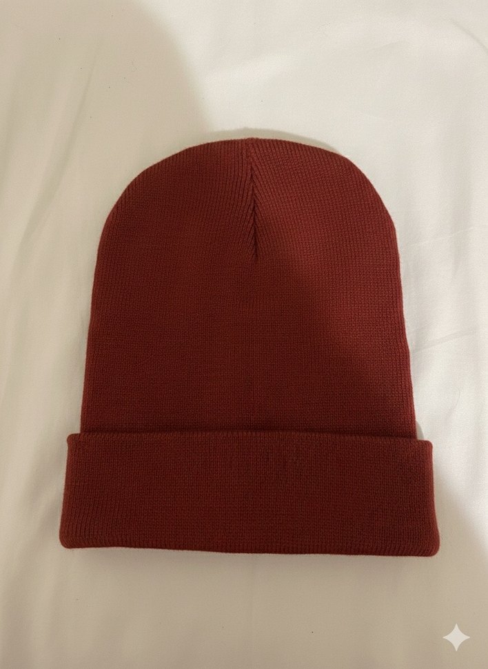 Kiremit renkte, örgü dokulu, içi yumuşak kumaşla kaplı kadın bere, rahat sokak stiline uygundur.