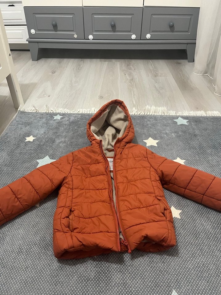 Kiremit kapüşonlu erkek çocuk mont, fermuarlı ve vücuda oturan kesime sahiptir. Yumuşak ve sıcak kumaştan üretilmiştir, sade ve günlük kullanıma uygundur.