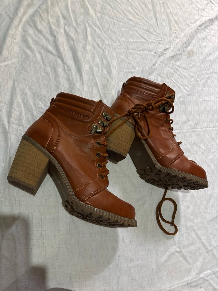 Kiremit rengi Deri Kadın Bot Blok Topuklu