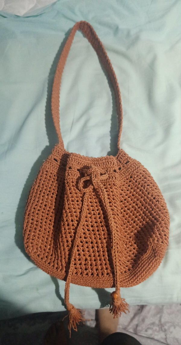 kiremit renkli, örgü dokulu, bohem tarzda kadın çantası. İpli kapanışı ve yumuşak dokusuyla günlük kullanıma uygundur. pazarlık payı vardır