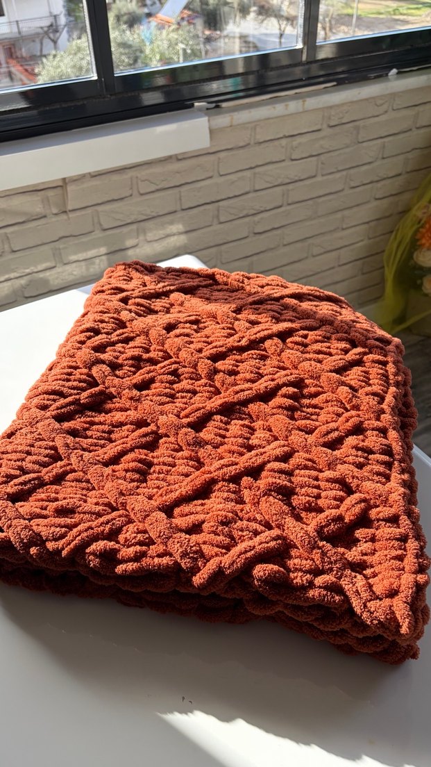 El emeğiyle özenle örülmüş, kalın ve yumuşacık dokulu kiremit renk bebek battaniyesi Doğal ve sıcak tonu sayesinde mekâna şık bir hava katar. Hem günlük kullanım hem dekoratif amaçla uygundur. • Kalın, tok ve kaliteli ip • Yumuşak dokulu – rahatsız etmez • Şık örgü modeli • Soğuk havalar için ideal İsteğe göre farklı renk ve model örülür