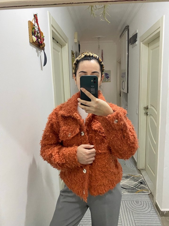 Kiremit rengi Peluş Salaş Kadın Ceket