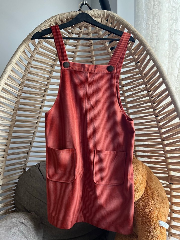 Kiremit rengi salopet elbise sorunsuz çok cici