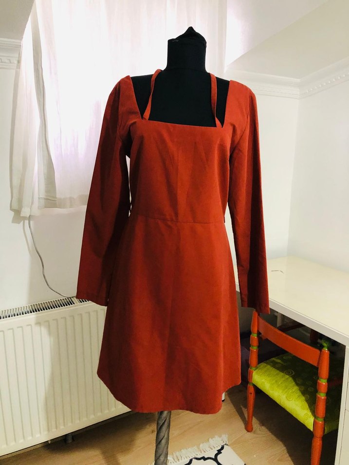 Kiremit rengi Uzun Kollu mini elbise