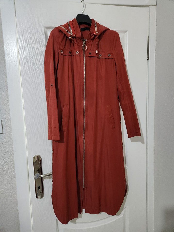 kiremit rengi uzun trençkot