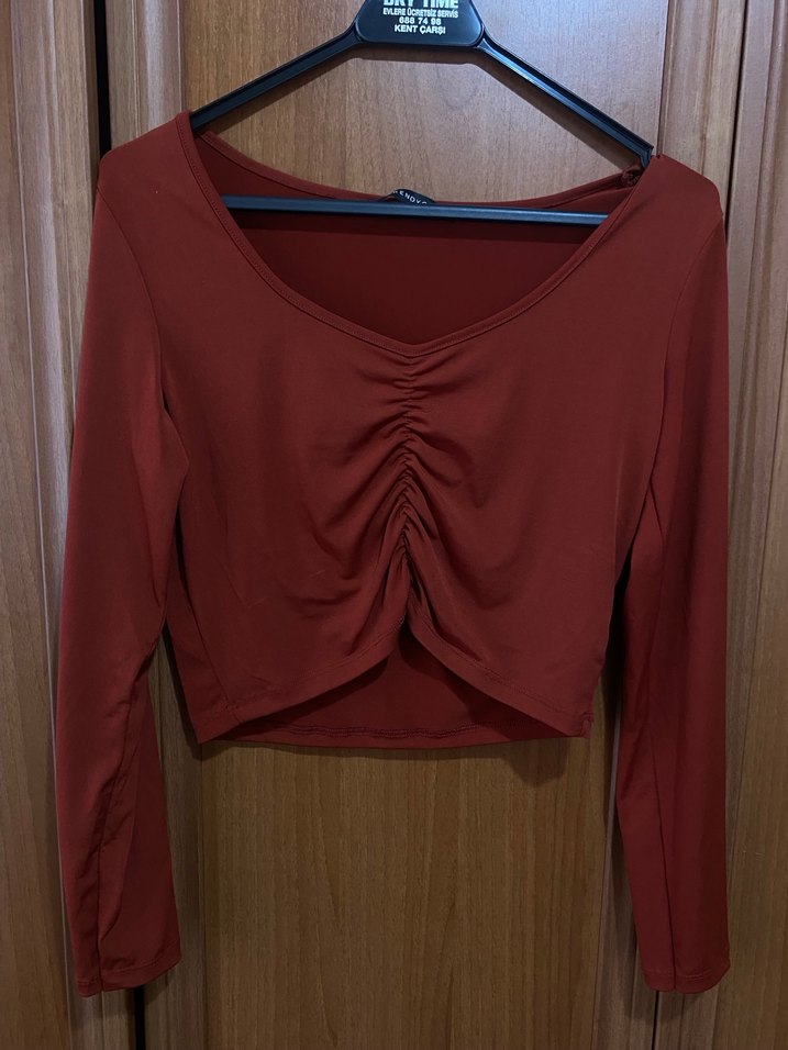 Kiremit rengi V Yaka Drapeli crop Bluz