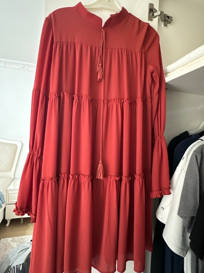 Kiremit rengiUzun Kollu Volanlı Midi tunik