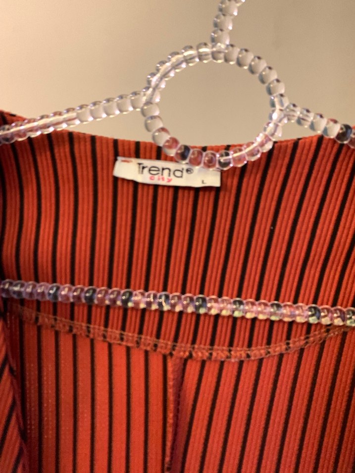 Parlak kiremit renk ve siyah çizgili iki düğmeli rahat esnek kumaşlı ütü istemez
