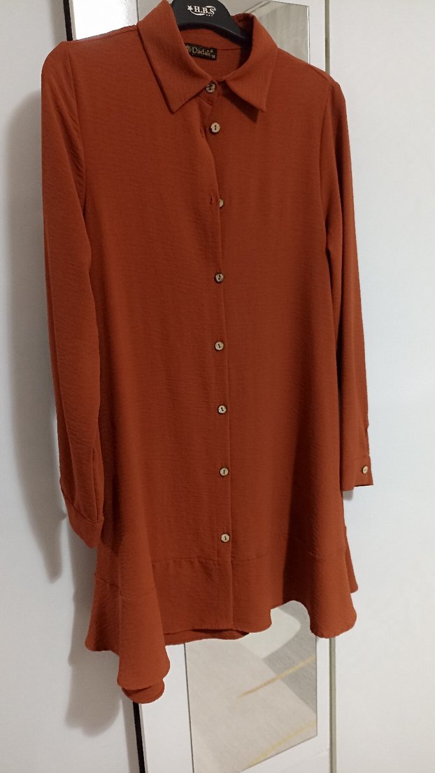 KİREMİT rengi Ayrobin tunik. Boyu: 83 cm. Koltukaltı: 48 cm. Aşağı doğru genişleyen bi modeldir. Rengi son fotoğraftaki gibidir.