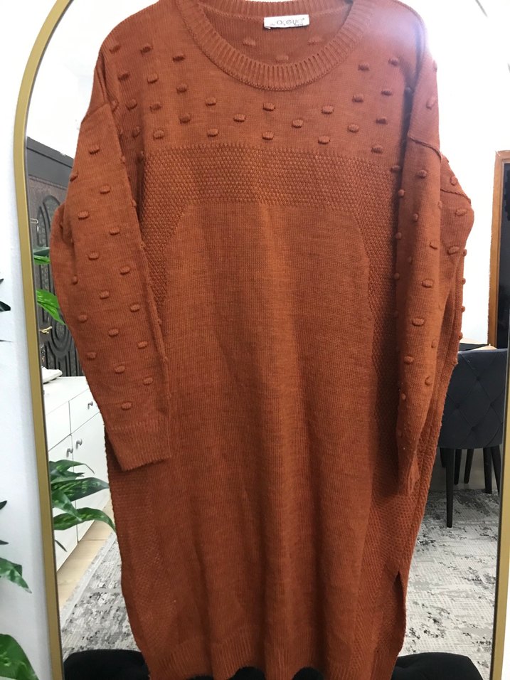 Kiremit Uzun Kollu Triko Kadın Kazak