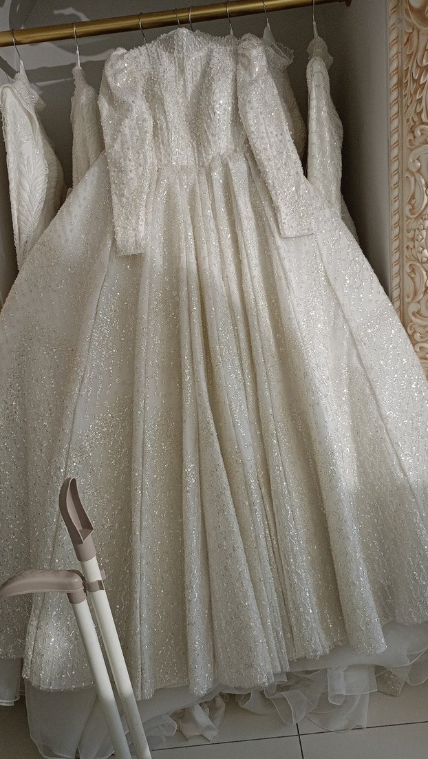 38 beden kırık beyaz ışıltılı gelinlik arkası ıpli 44bedenede olur