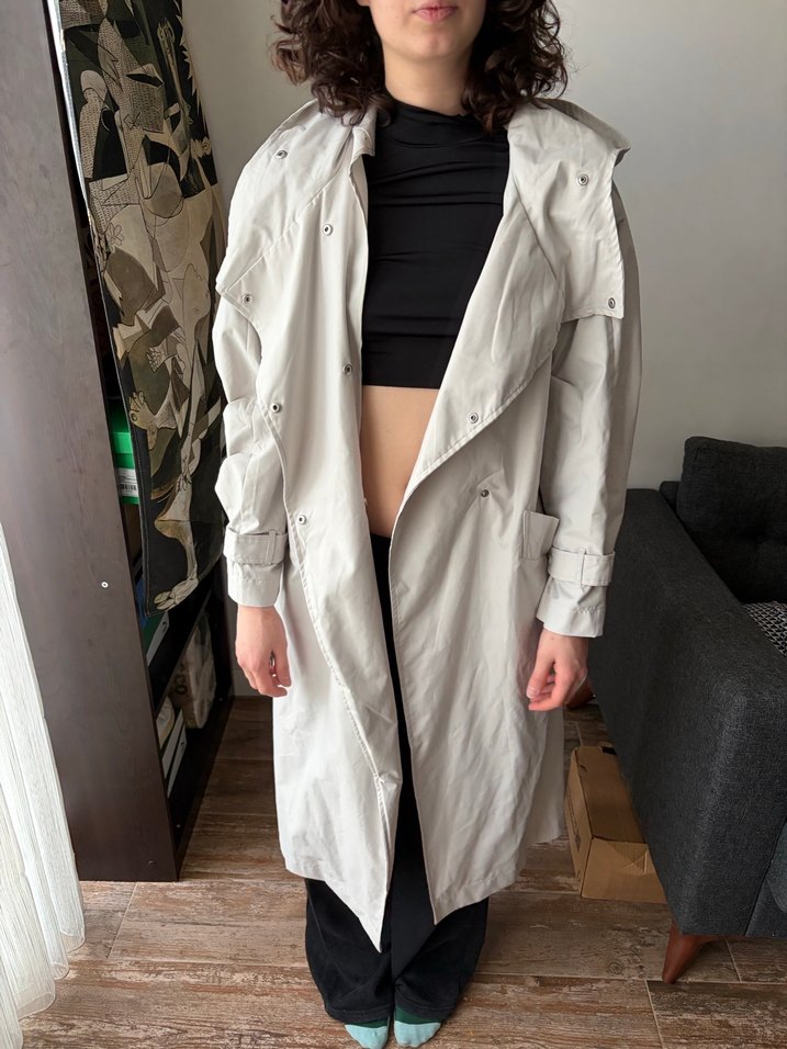 Kırık Beyaz tonlarında Keten Midi Trençkot ve yağmurluk hiç kullanılmadı