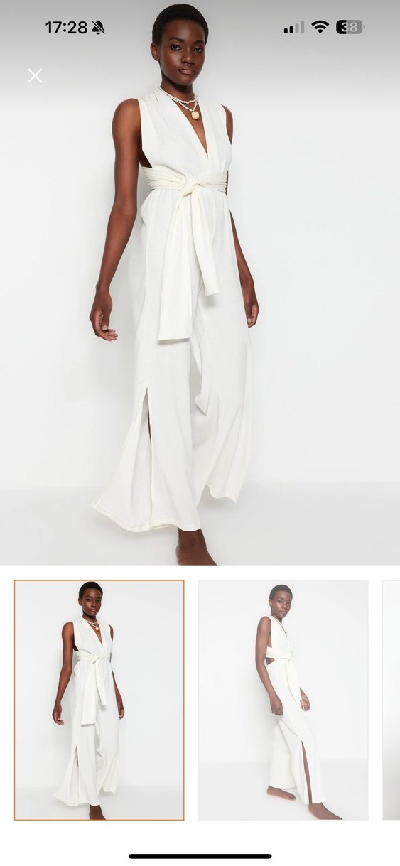 Kırık beyaz Tulum, V Yaka, Kolsuz