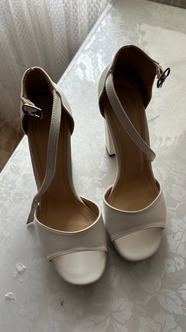 KırıkBeyaz topuklu, tokalı ve minimalist tasarıma sahip kadın ayakkabısı. günlük kullanıma uygun klasik şıklık sunar.