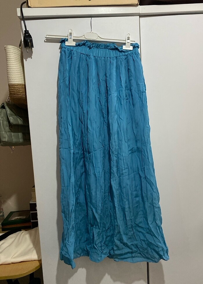 Deniz mavisi rengi var, bir kere giydim. Astarı mevcut
