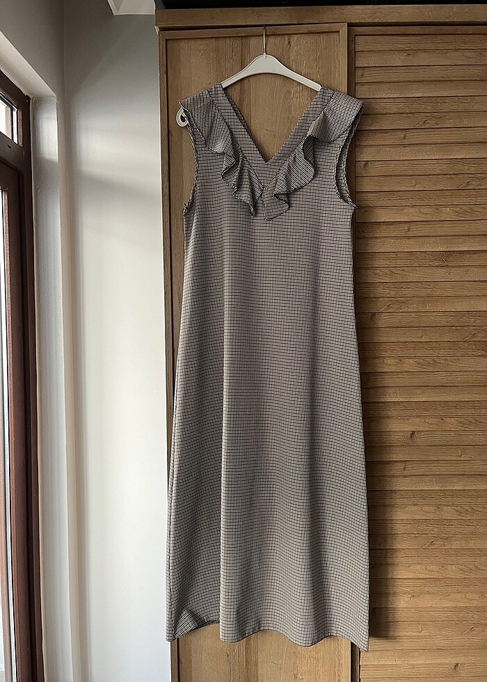 Kumaşı ütü istemiyor, ekose kumaş jile. Geniş kesimdir. 130 cm uzunluğunda , 38 beden