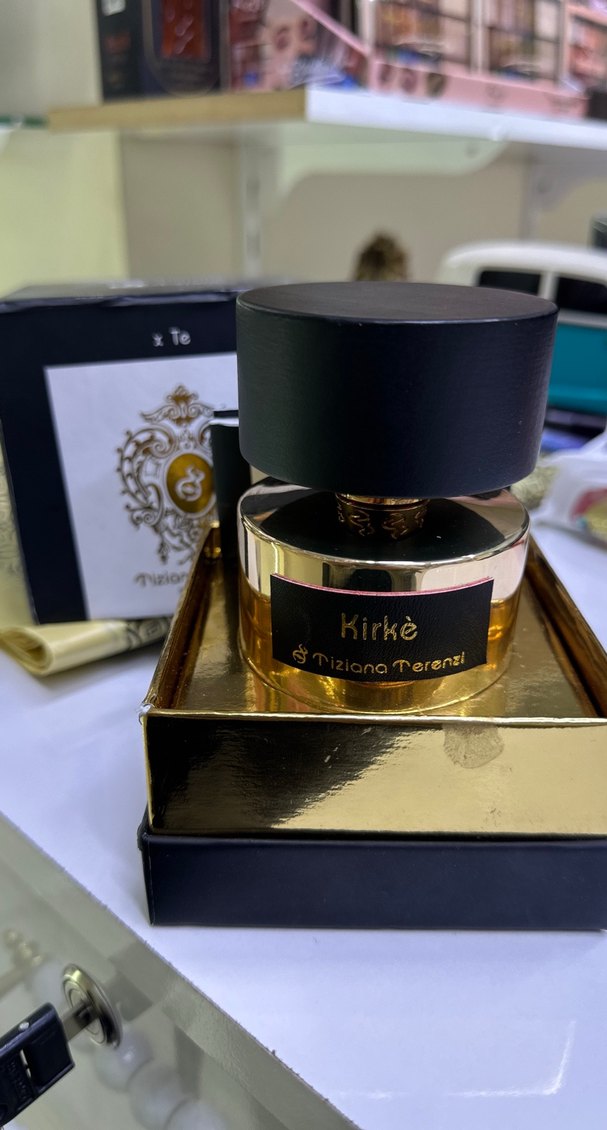 Kirke erkek parfümü, parlak altın renkli şişesi ve siyah kapağı ile gösterişli ve klasik tarz sunar. Zarif tasarımı lüksü yansıtır. ✨