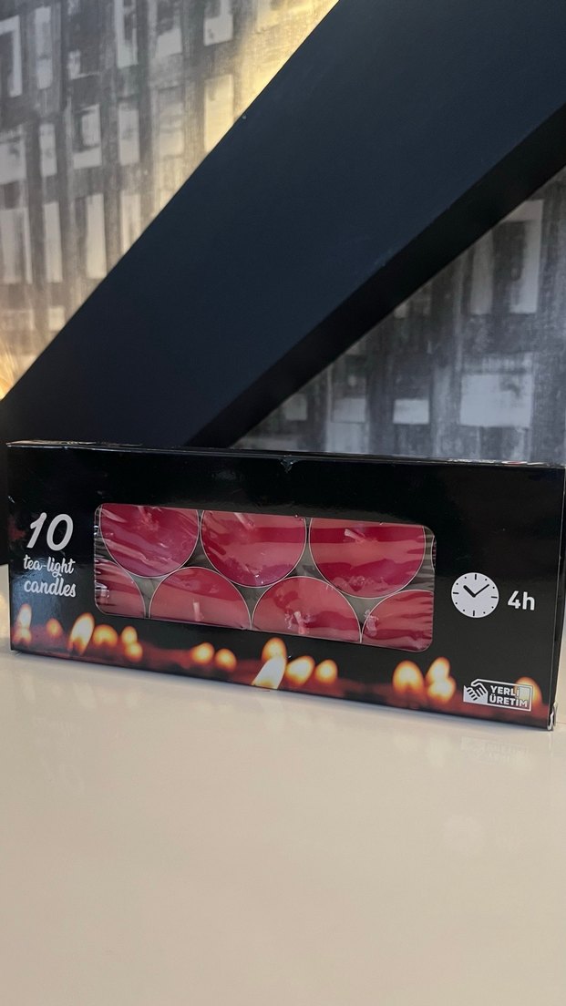4 saat yanma süresine sahip 10 adet kırmızı tealight mum seti. Sıcak bir atmosfer için uygundur.Açılmamış