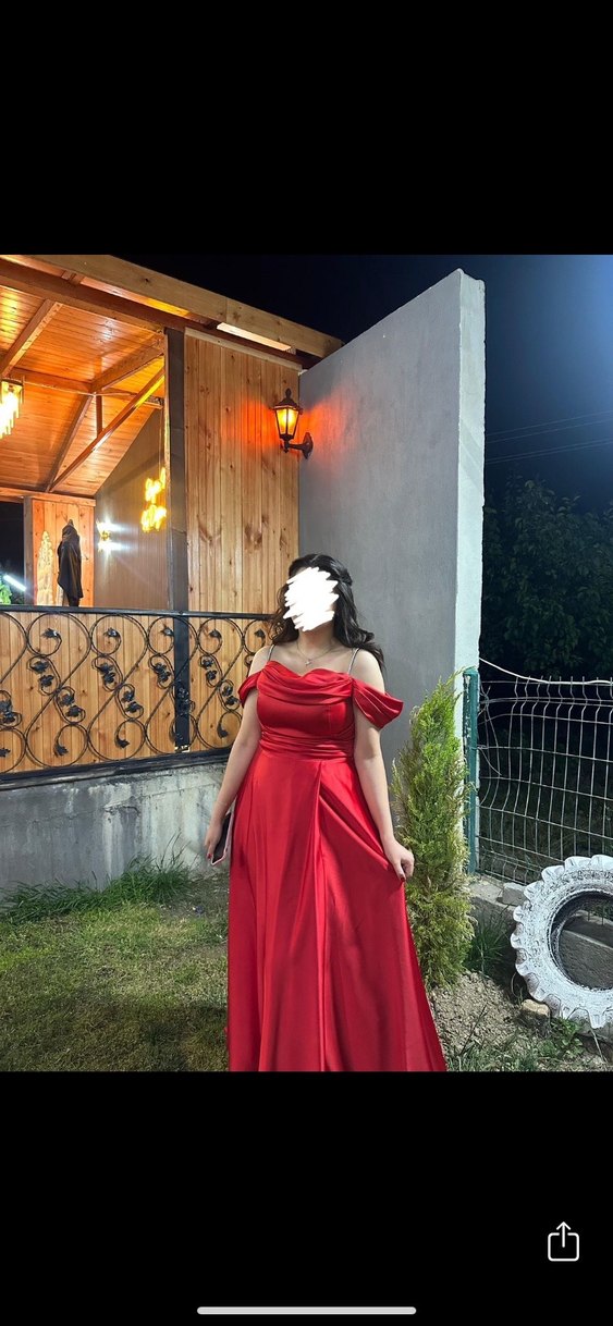 Kirmizi uzun abiye yirtmaci var ama rahatsiz edici degil bir kere kullanildi çok güzel bir model kilo verdigim için satiyorum.