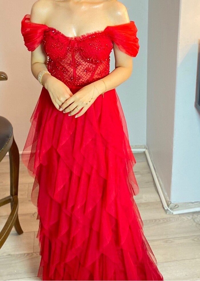 Kırmızı kına abiye elbise Ben 50 kg da giydim 10 cm topuklu giymiştim