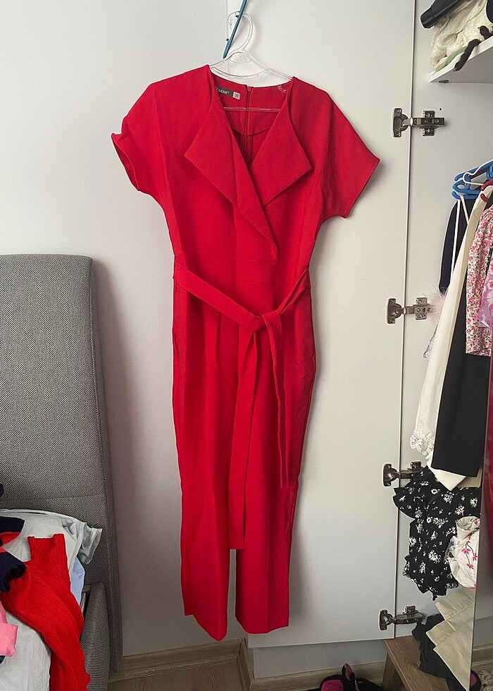 Kırmızı abiye tulum çok az kullanıldı